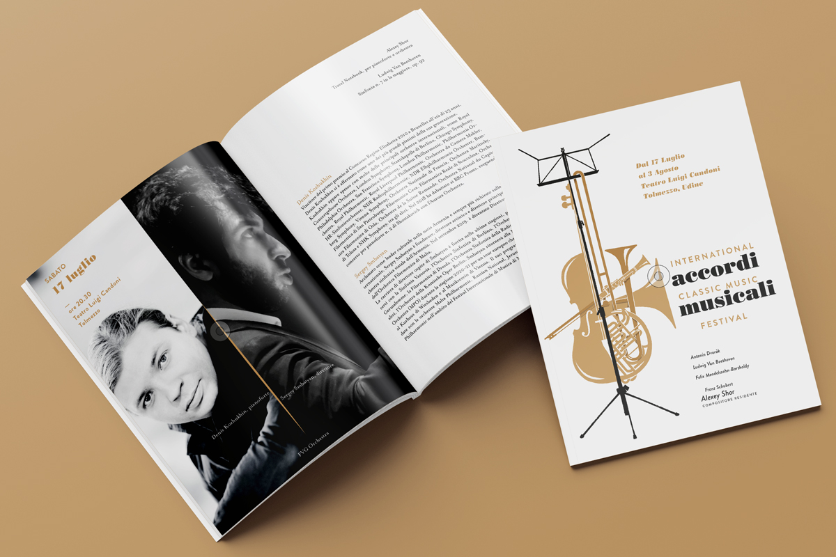 Per la rassegna di musica classica “Accordi Musicali” abbiamo creato un’immagine che “accordasse” diversi elementi dell’orchestra (archi, legni, ottoni), in un’unica composizione.