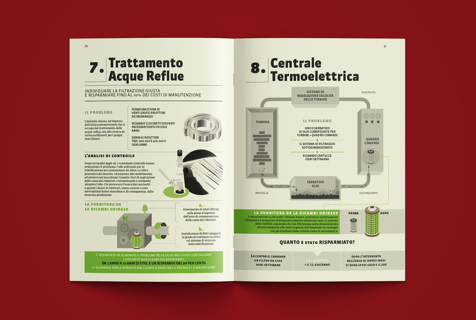 Controils “analizza e risolve” i problemi derivanti da filtrazioni sbagliate o carenti e questo comporta per i suoi clienti non solo miglioramenti alla produzione grazie all’ottimizzazione dei sistemi, ma anche risparmi notevoli spesso a tante cifre. Da qui l’adozione di uno stile comunicativo diretto e concreto che si affida alla composizione di tanti casi studio volti a illustrare i tanti problemi affrontati e i vantaggi derivanti dalle soluzioni.